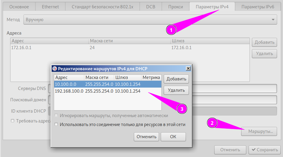 Добавить статические маршруты для сетевого интерфейса eth1: