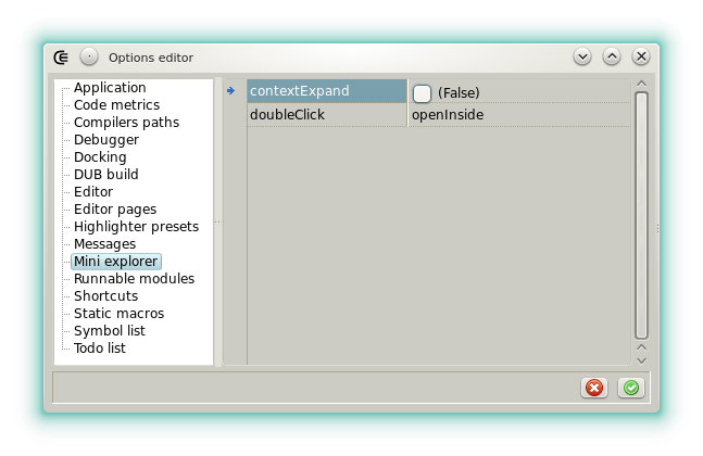 • contextExpands: If checked then the tree auto expands to the folder that contains the source or the project file that's been selected.