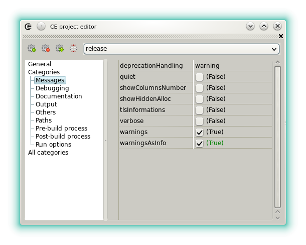 Groups the options related to the messages emitted by the compiler. These options are defined per-configuration.