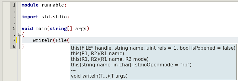 The D Completion Daemon (DCD) is used to accomplish IDE-grade features such as